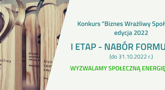 Jeśli w tym, co robisz na co dzień dominuje pryzmat szerszego spojrzenia na to czym jest biznes, jeśli masz oczy i serce szeroko otwarte, dostrzegasz potrzeby, wspierasz swoich pracowników i świadomie podejmujesz decyzje, które są dobre dla środowiska, czy społeczności lokalnej, ten konkurs jest właśnie dla Ciebie.Wrażliwość społeczną można dostrzec w drobnych gestach i decyzjach, które podejmujemy każdego dnia, a które dają dobry, pozytywny wpływ na Ciebie, najbliższe środowisko czy globalny ekosystem. Weź udział w konkursie i podziel się z nami swoją wrażliwością